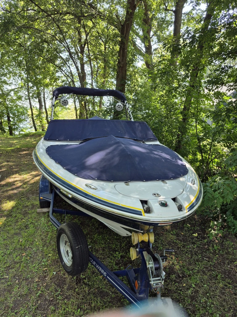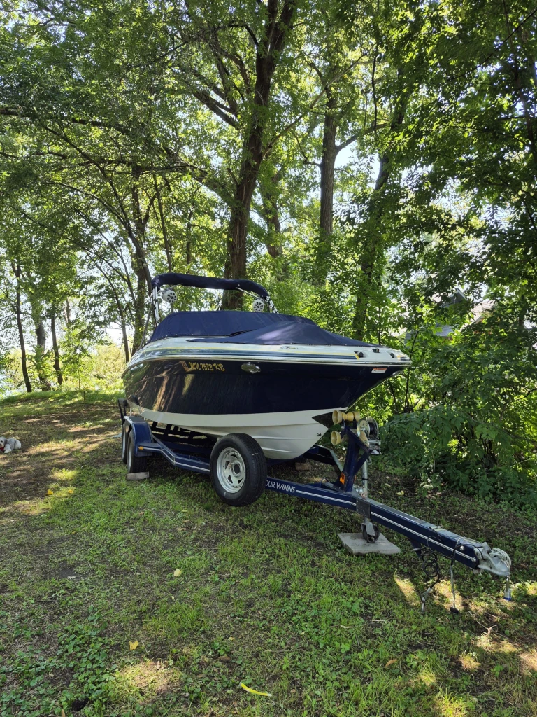 Perfect for cruising & set up for Skiing & Tubing Beam is 8’6″, length 22′ INCLUDES TRAILER